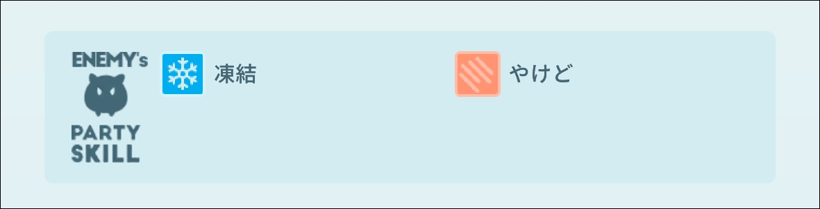 「エグリプト」のイベントクエスト「カガヤキ神殿のおじゃま虫」では、パーティースキルとして「凍結」と「やけど」が付与されてしまいます。