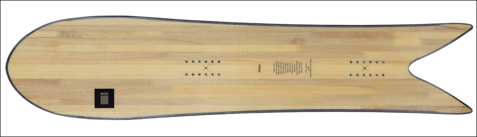 3つ目はPW01です。サイズは144.5センチのショートレングスで、特徴的なスワローテールを採用しています。まるでショートサーフボードのような乗り味で、横への動きも縦への加速も自由自在です。サーフィンのような感覚を雪山で味わいたい方にはたまらない一本です。