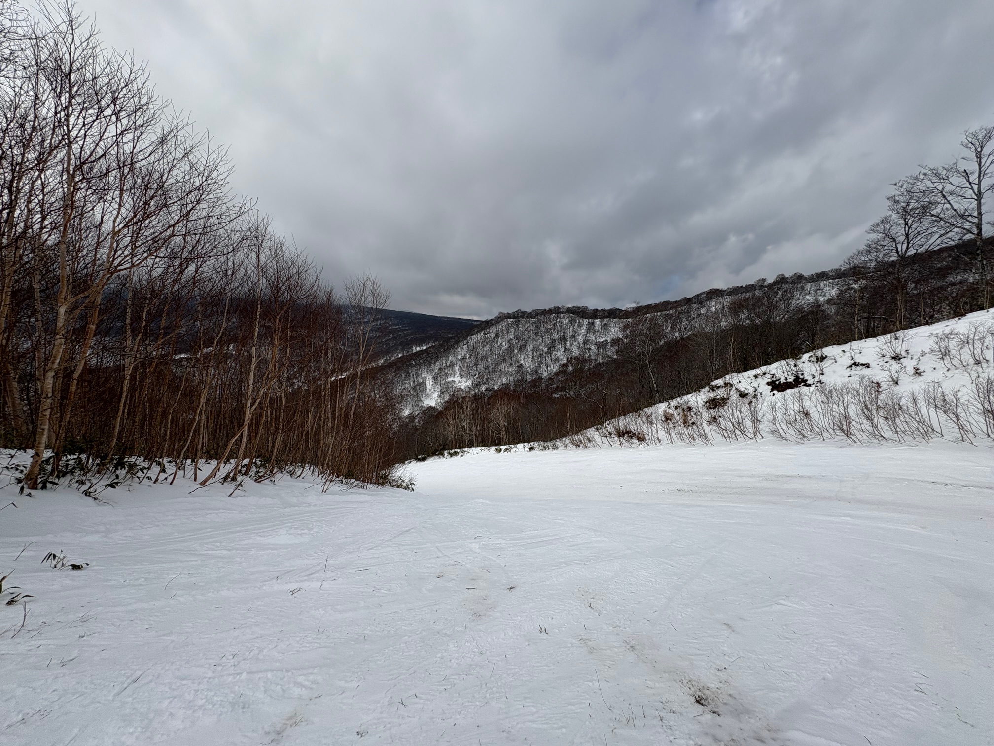 滑走日当日は、まだ積雪が十分ではなく、ゲレンデ中央から下部のコースはクローズ。
