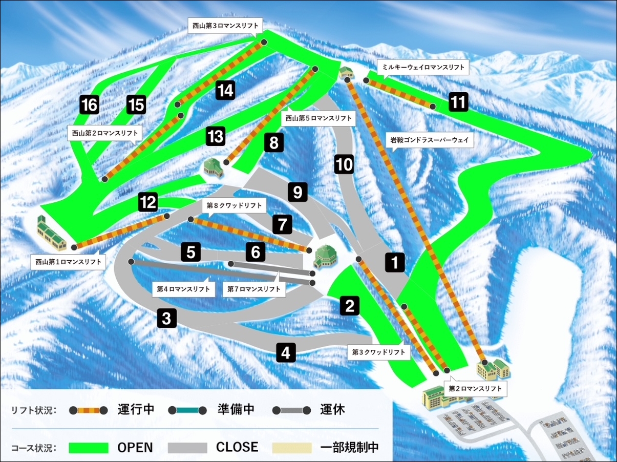 西山エリアと、1番のロングランが楽しめる「ミルキーウェイ」がオープンしていました。