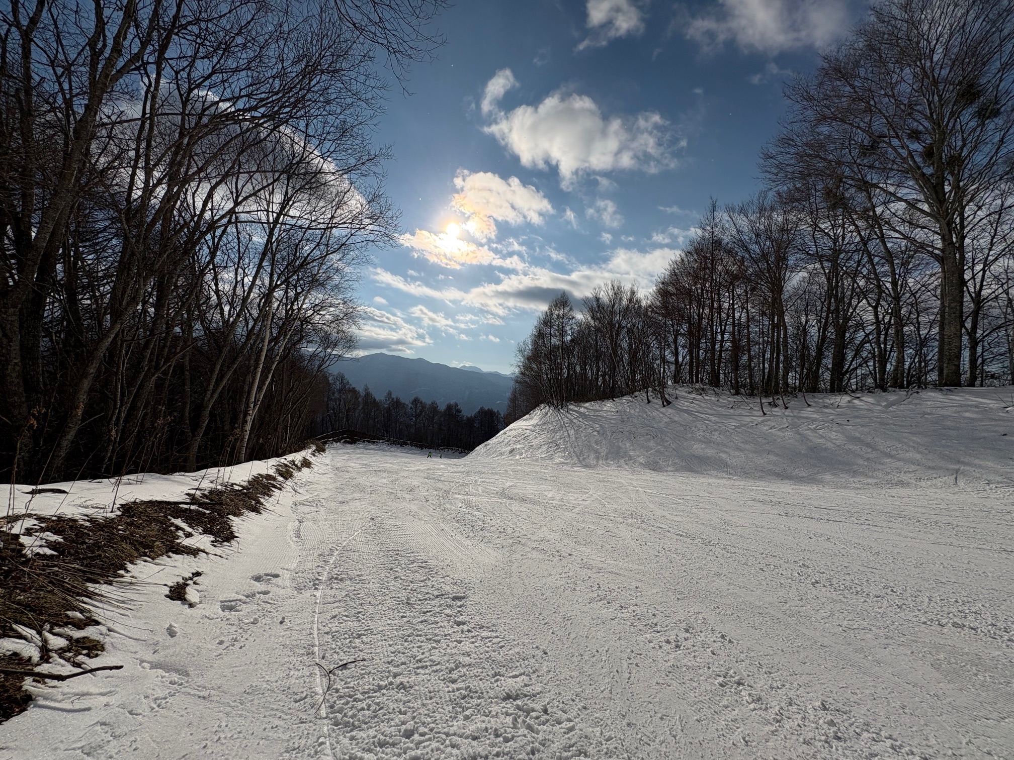 1日中快晴で、気温はプラス3℃~プラス6℃くらい、暖かい日でしたが穏やかなコンディションで気持ち良い2025年の滑り納めになりました。