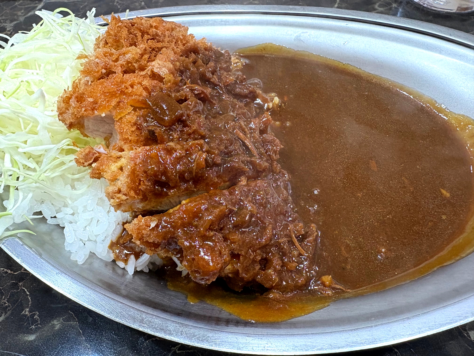 熱々のトンカツとカレーで、キャベツが良いアクセントとなり、金沢のブラックカレーと近い方向性も感じるカツカレーでした。