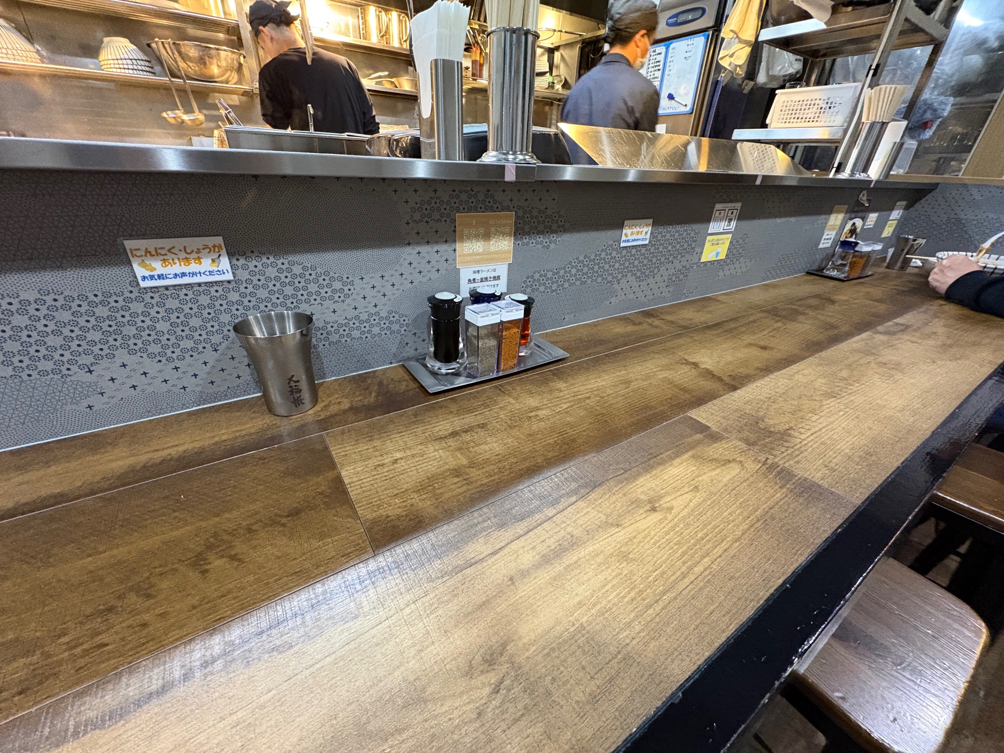 厨房との距離が近く、スープの香りや炒め物の音がダイレクトに伝わってきて、ラーメン欲をさらにかき立ててくれます。