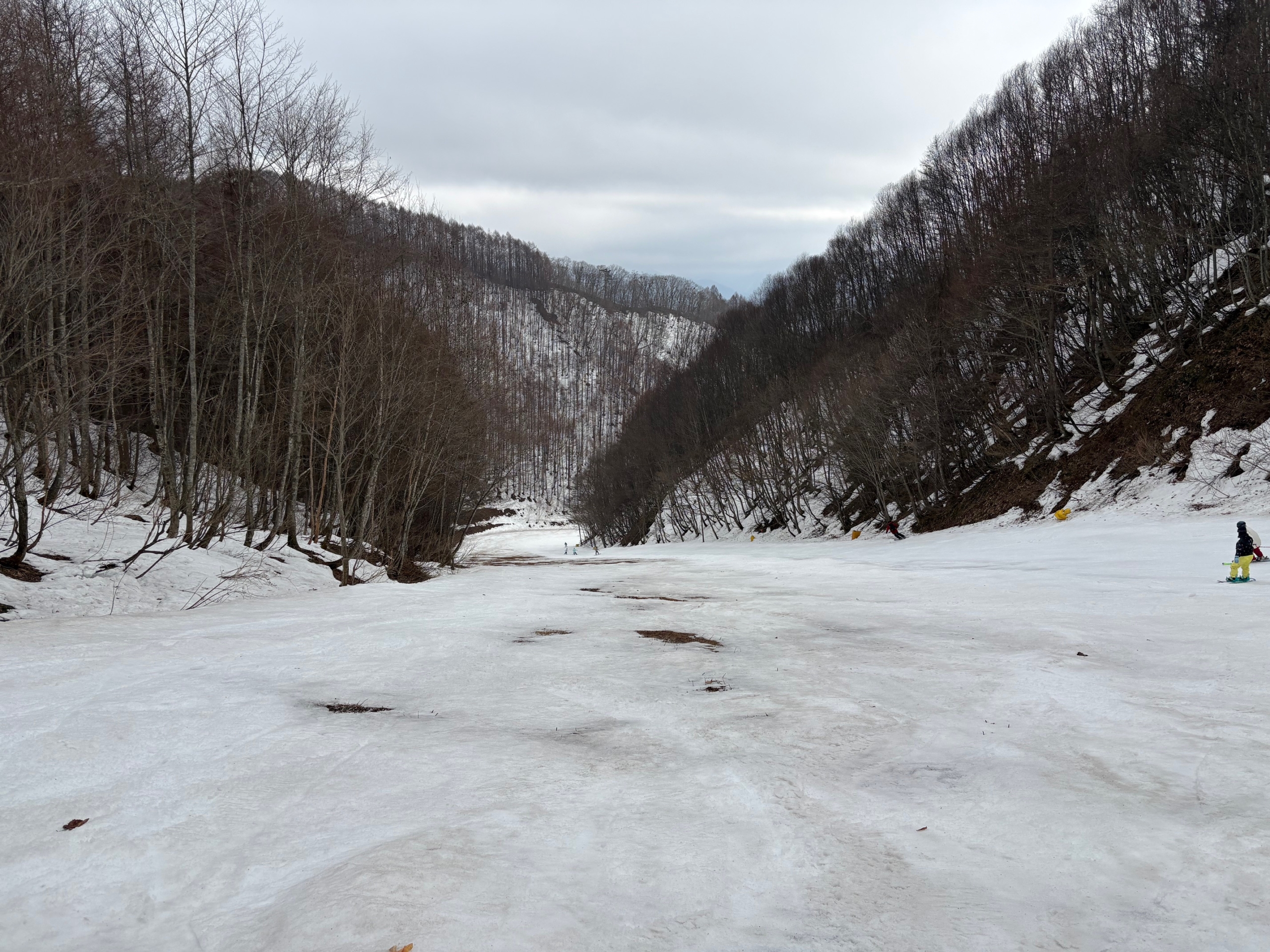 ゲレンデ下部のコースは土やブッシュが出ている箇所も結構ありました。