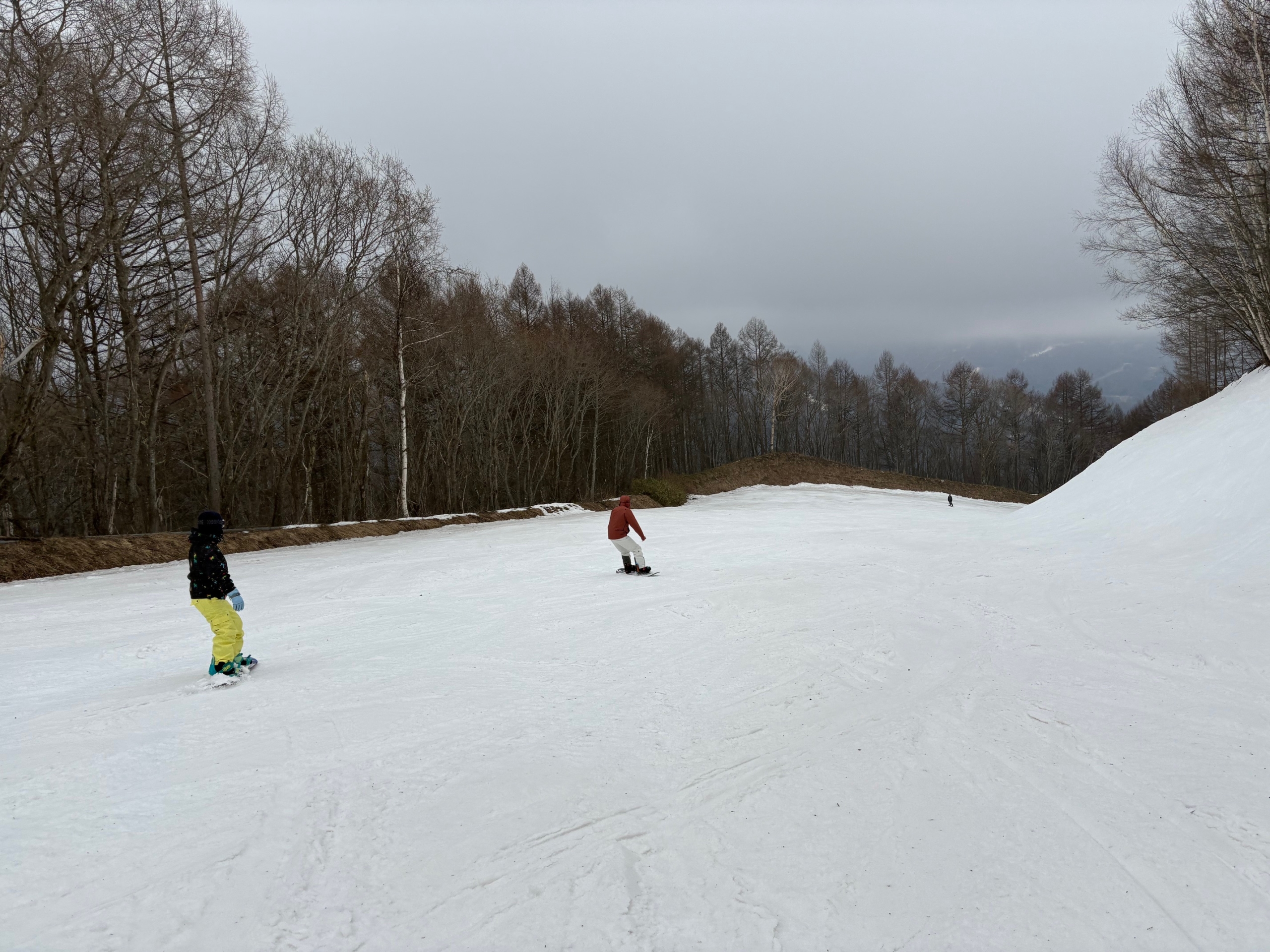 今回は、初心者の練習がメインだったので、ゲレンデ下部のコースだけを利用して、木の葉からS字ターンを中心に練習をしていました。